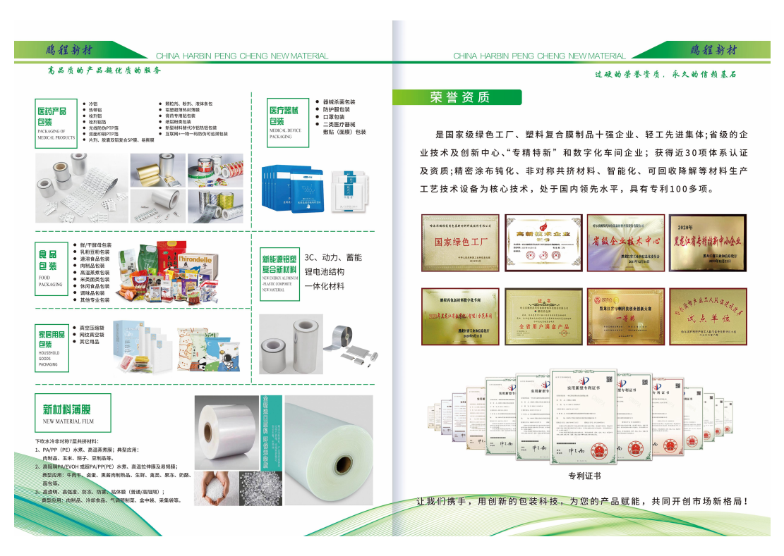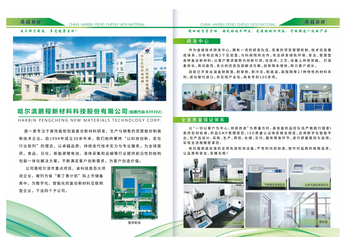"質(zhì)量是企業(yè)的生命線,鵬程新材料建立了全面質(zhì)量保證體系。以“一切以客戶為中心,持續(xù)改進(jìn)”為質(zhì)量方針,高素質(zhì)的品控隊伍嚴(yán)格遵循國家各類藥包材標(biāo)準(zhǔn)、藥品GMP管理規(guī)范、ISO質(zhì)量認(rèn)證體系相關(guān)規(guī)定,應(yīng)用數(shù)字化智能平臺,在產(chǎn)品設(shè)計、采購、生產(chǎn)等各個環(huán)節(jié)進(jìn)行嚴(yán)格的質(zhì)量管控與追溯,確保每一件產(chǎn)品都品質(zhì)上乘、安全可靠。" ]