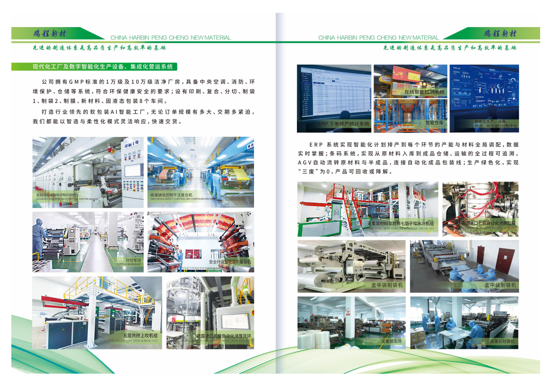 "詳細(xì)內(nèi)容": [ "在生產(chǎn)環(huán)節(jié),鵬程新材料更是展現(xiàn)出了強大的實力。公司擁有GMP標(biāo)準(zhǔn)的1萬級及10萬級潔凈廠房,配備了現(xiàn)代化工廠及數(shù)字化智能化生產(chǎn)設(shè)備,集成化營運系統(tǒng)打造出行業(yè)領(lǐng)先的軟包裝AI智能工廠。",